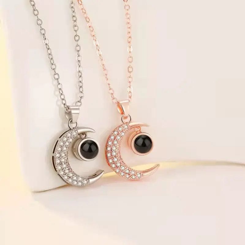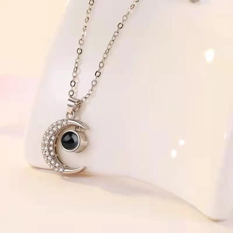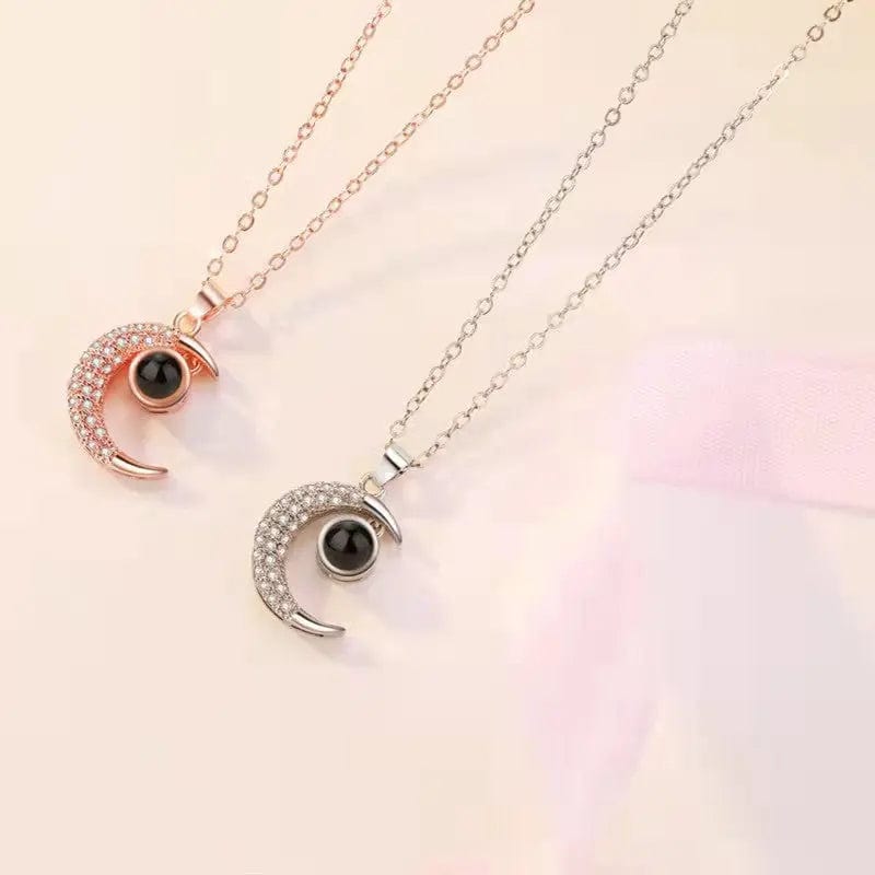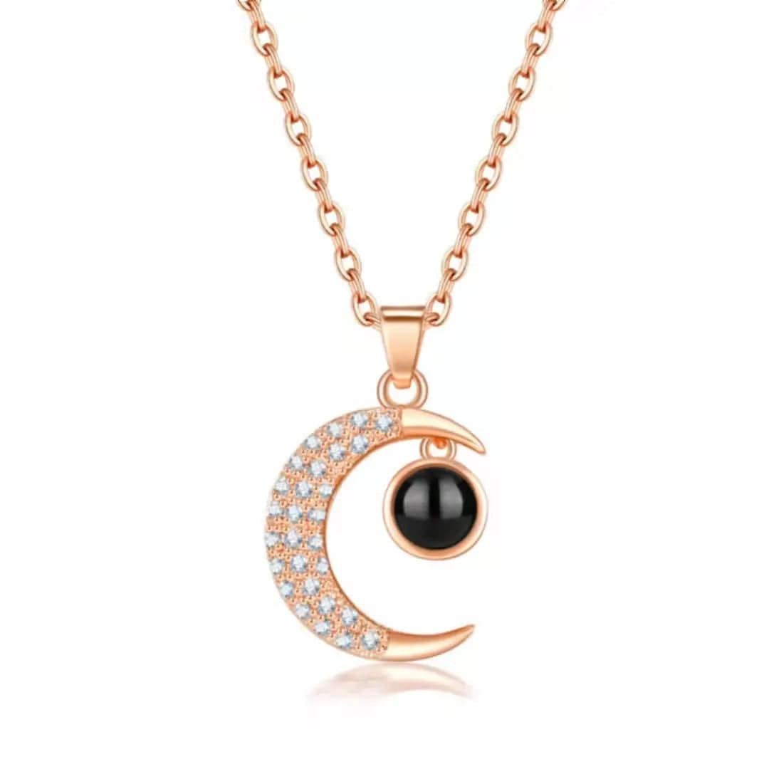 Custom Half Moon Zircon Hidden Photo NecklaceCustom Half Moon Zircon Hidden Photo Necklace