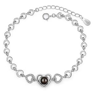 The Custom Heart Charm Hidden Photo Bracelet is a piece of jewelry that features a heart-shaped charm that can hold a hidden photo.