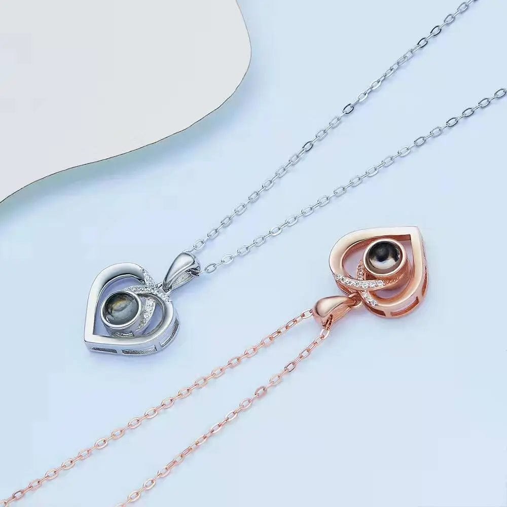 Custom Heart Cubic Zirconia Hidden Photo Necklace