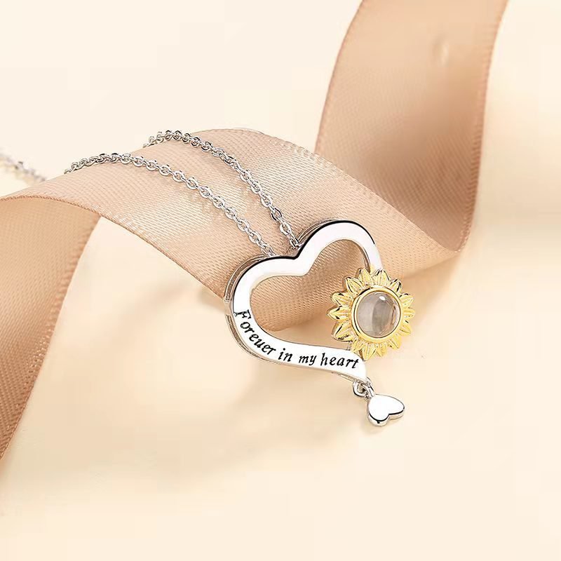Capture memories and style with the “Custom Heart of Sunlight Hidden Photo Necklace.” A sunflower-heart design opens to reveal a personalised photo. perfect for heartfelt moments.