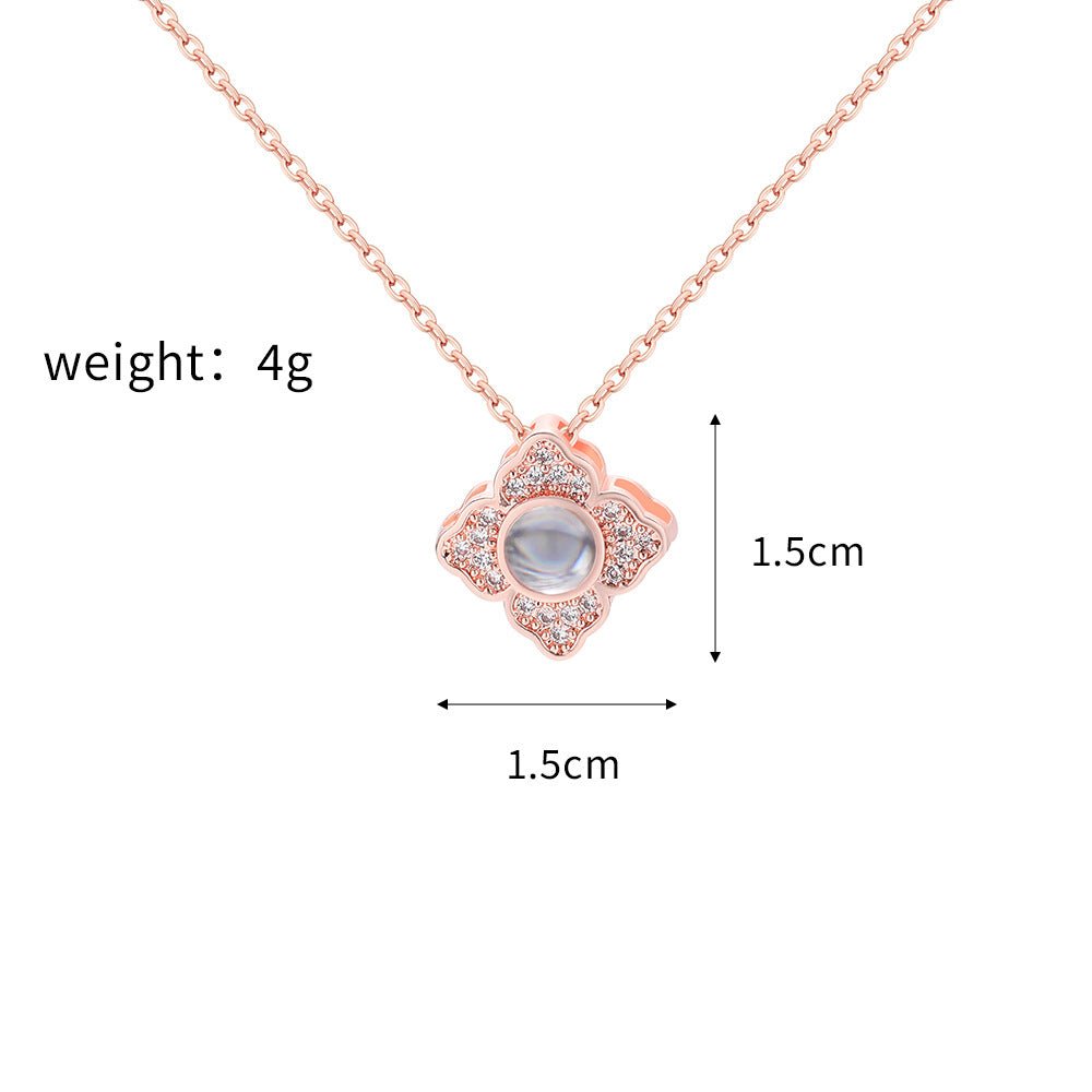 Introducing our exquisite Custom Hidden Photo Projection 4 Petal Flower Necklace. an embodiment of refined beauty and treasured memories.