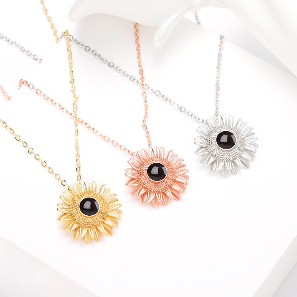 Custom Hidden Photo Projection Bloom Sunflower NecklaceCustom Hidden Photo Projection Bloom Sunflower Necklace