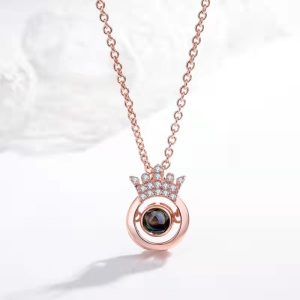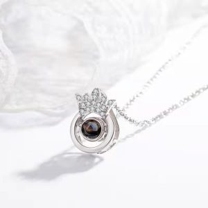 Introducing our exquisite Custom Hidden Photo Projection Round Crown Diamond Necklace. a radiant union of timeless elegance and personalized charm.