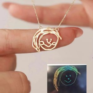 Transform your child’s first artwork into a beautiful and lasting keepsake with our Custom Kids Hand Drawing Necklace. This unique piece of jewelry turns your child’s hand-drawn masterpiece into a stunning pendant. allowing you to carry a piece of their creativity and love with you wherever you go. Perfect for parents. grandparents. and loved ones. this necklace is a heartfelt way to celebrate and remember your child’s early artistic expressions.