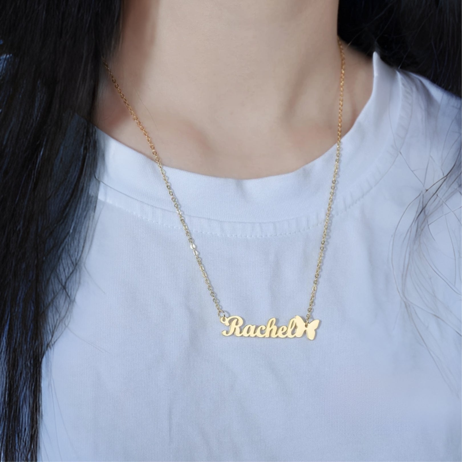 Discover the perfect blend of personal expression and symbolic beauty with our Custom Name and Butterfly Necklace. This exquisite piece allows you to customize your name with a delicate butterfly. creating a unique and meaningful accessory that symbolizes transformation. self-discovery. and the joy of new beginnings. Perfect for yourself or as a thoughtful gift. this necklace serves as a constant reminder to embrace change and spread your wings.