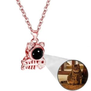 - MEANINGFUL – If you love cats. then you must not miss this perfect necklace. We adopted the cats. plus their favorite fish bones to design this cute pet necklace. You can show your favorite photo by projection or mobile phone camera. let your favorite pet always accompany you.