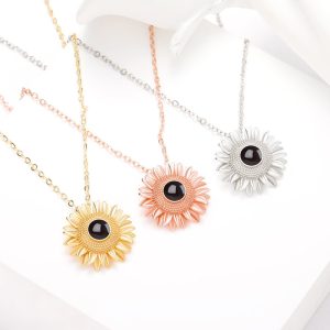 Custom Hidden Photo Projection Bloom Sunflower Necklace