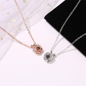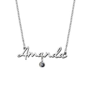 Custom Photo Projection Tiny Diamond Zircon Gem Necklace