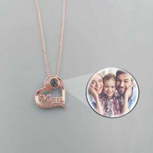 Custom Photo Projection Necklace I Love You Mom Heart Infinity Pendant Necklace