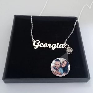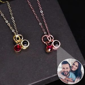 Custom Photo Projection Necklace with Birth Stone Pendant